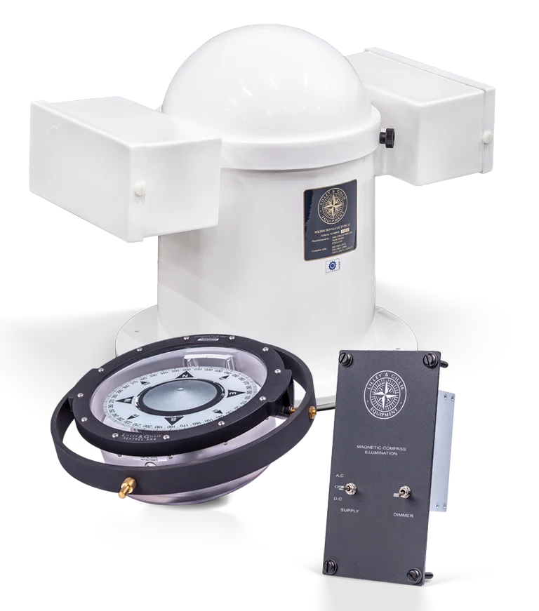 We can also supply a non-reflector binnacle which has no periscope. In this case, a different method must be used to read the compass. We offer our GS820 TMC system to meet this requirement. A pickup attached to the compass allows interpretation of the heading. A repeater can be placed where convenient. It also allows an NMEA digital signal to output to other equipment such as the autopilot. Even when a periscope is fitted a TMC is often added for this function.