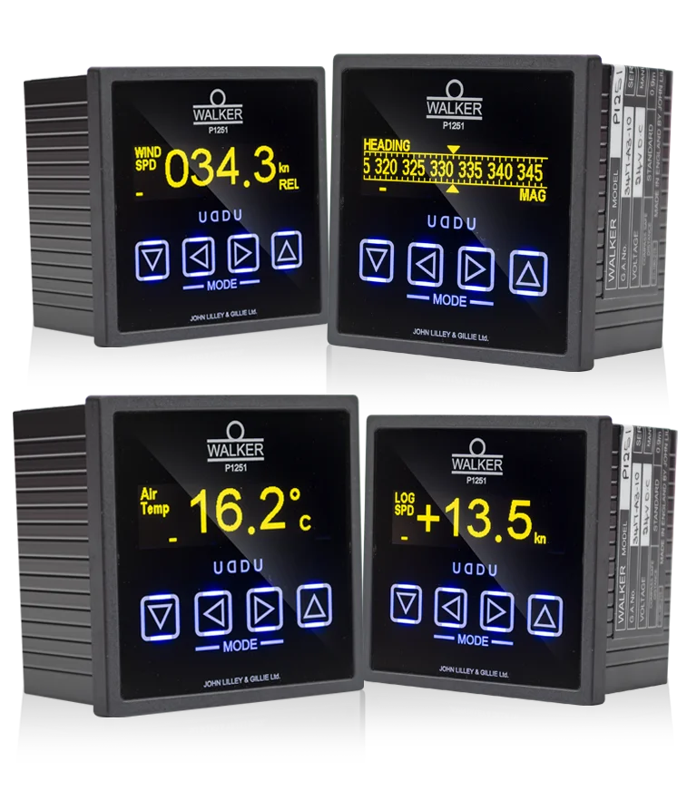 The Walker P1251 multi-functional display system is housed in a DIN 43700 (DIN 96) pattern case and reads a variety of IEC 61162-1 : 2000, NMEA 0183 messages via Multiplexor (customer supply) and can be used in conjunction with other equipment to display the following information as required: